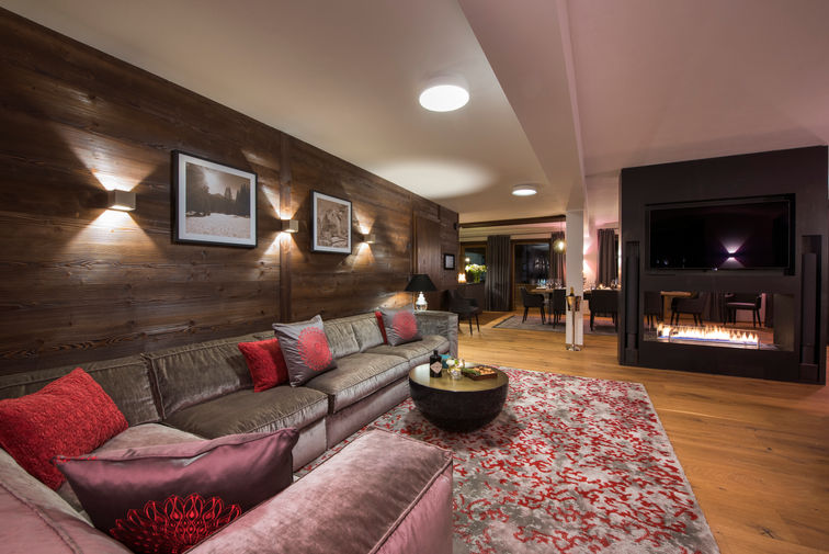 At its heart, you will find a modern fireplace which adds to its stylish alpine ambiance. There is also a fabulous dining table with plenty of room for the whole party to enjoy a tailor-made dinner together and a sumptuous L-shaped sofa, ideal for curling up on after a long day on the slopes.