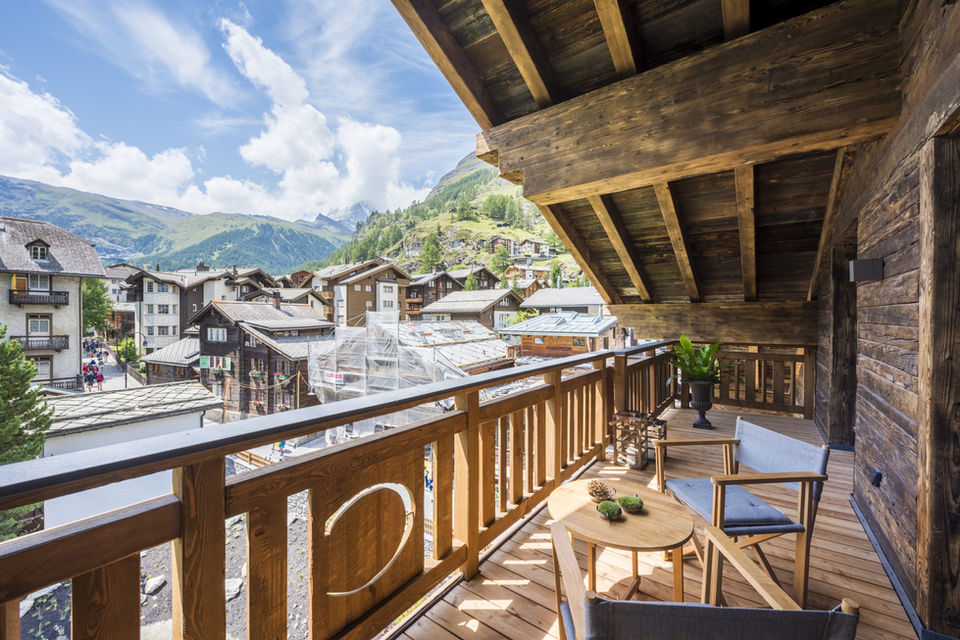 During the day, sunlight pours into the room through the huge floor to ceiling sliding doors which open out onto to the sun-drenched balcony. From the large balcony you can see the majestic Matterhorn standing proud.